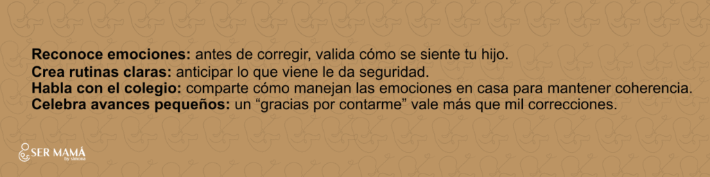- Si se validan las emociones (“veo que estás molesto”), aprenden a ponerles nombre.