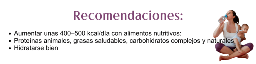 Durante la lactancia materna, el cuerpo usa una cantidad considerable de energía para producir leche, mantener el metabolismo y recuperarse del parto.